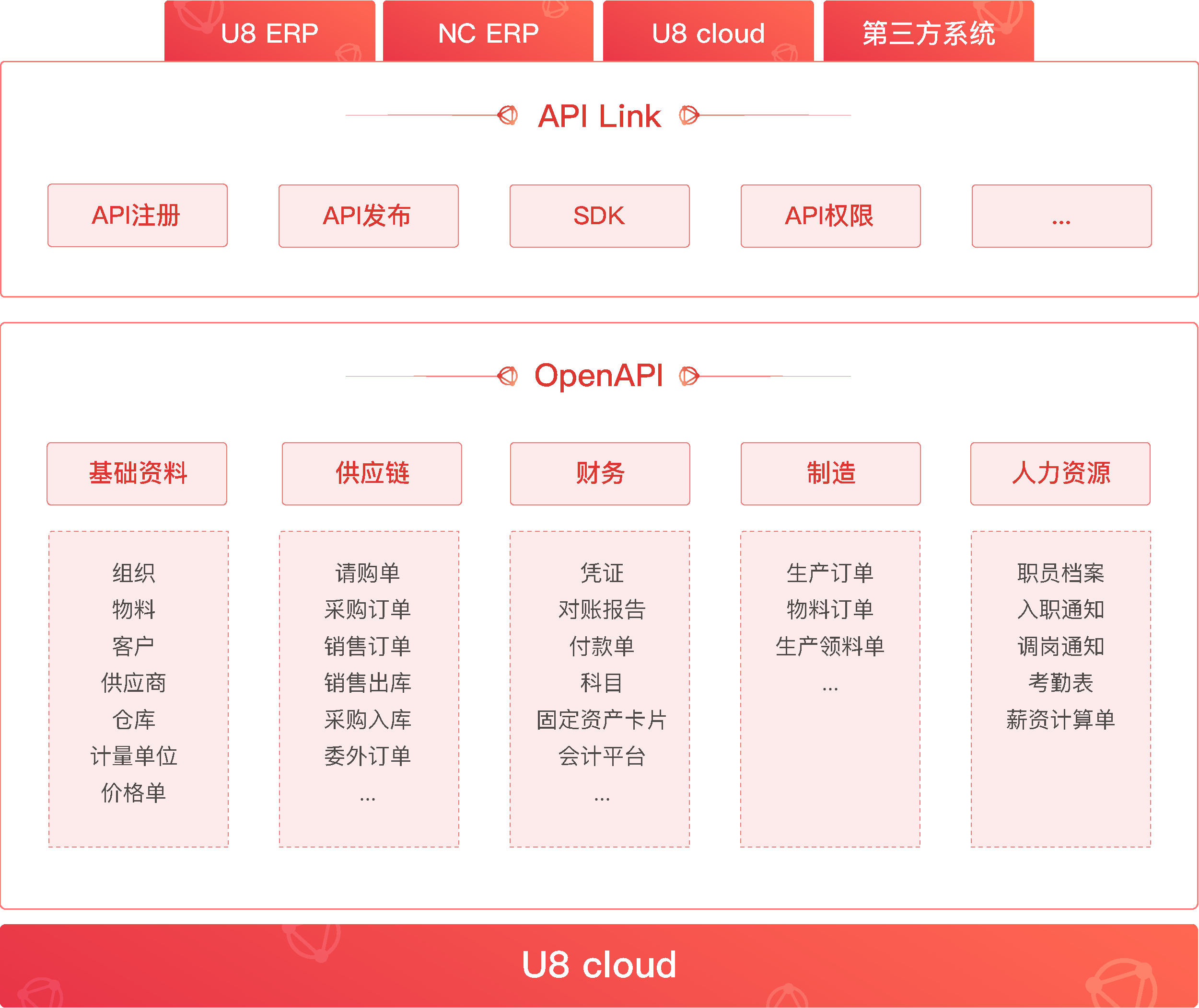 U8 cloud OpenAPI是基于用友U8 cloud企業(yè)用戶和U8 cloud的開放接口,接入外部合作伙伴,為企業(yè)用戶提供豐富應(yīng)用和完善服務(wù)的開放平臺(tái)。平臺(tái)采用“云+端”的形式滿足企業(yè)用戶實(shí)現(xiàn)云ERP和云服務(wù)對接的要求
