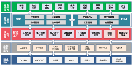 數(shù)據(jù)采集層:以工業(yè)物聯(lián)組件為基礎(chǔ),輔之以現(xiàn)場移動終端人工采集手段,以條碼、二維碼、RFID標簽為載體,構(gòu)建起連接設(shè)備自動采集結(jié)合人工干預采集的完整的數(shù)據(jù)采集解決方案,為系統(tǒng)應(yīng)用提供實時準確的數(shù)據(jù)來源;