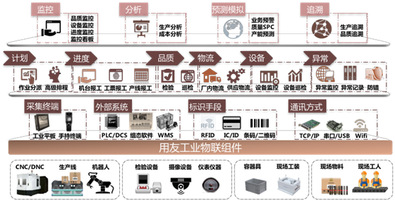 用友智能工廠應(yīng)用架構(gòu)分為以下三個層次: